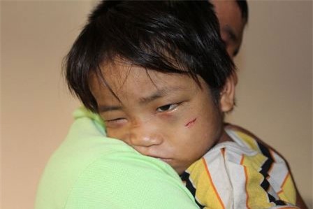 Bà Lưu Thị Bích Hợp, Phó Chủ tịch UBND P. Tân Hưng (Q.7) cho biết, cách đây 1 tuần, cháu Trịnh Nguyễn Thành Đức đã bị Hòa và Cường dùng ống nhựa, thuốc đang cháy đánh, chích một cách tàn nhẫn. Cháu Đức bị sưng húp cả mặt, mắt không mở ra được. Các vết đánh rớm máu trên khắp cơ thể.