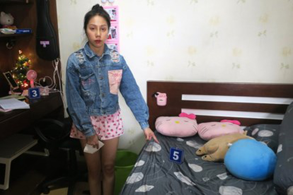 Sau nhiều giờ hành hạ, đến 18h, Trang phát hiện bé gái có triệu chứng khó thở, nôn ói nên kéo nạn nhân ngồi lên giường và gọi điện cho ông Nguyễn Kim Trung Thái.