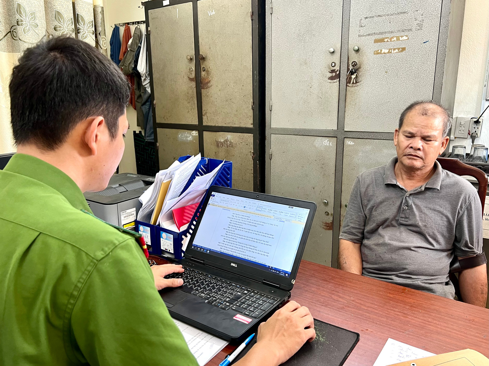 Đối tượng Tối (phải) tại cơ quan công an. Ảnh: Công an cung cấp