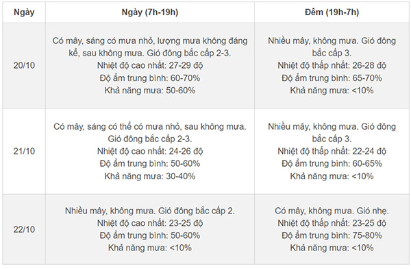 Cụ thể về thời tiết tại thủ đô Hà Nội trong 3 ngày (20-22/10):