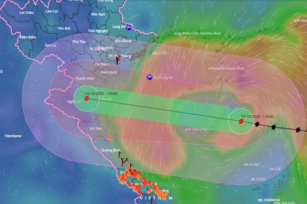 Đến 19h ngày 14/10, vị trí tâm áp thấp nhiệt đới ở khoảng 19,5 độ Vĩ Bắc; 105,4 độ Kinh Đông, trên đất liền khu vực Bắc Trung Bộ. Sức gió mạnh nhất vùng gần tâm áp thấp nhiệt đới mạnh cấp 6-7 (40-60km/giờ), giật cấp 9.Trong 12 - 24 giờ tiếp theo, bão đi vào đất liền các tỉnh đồng bằng Bắc Bộ, Bắc Trung Bộ với sức gió mạnh cấp 7-8, giật cấp 10 và suy yếu dần thành áp thấp nhiệt đới.