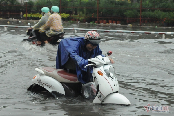 Mưa ngập mênh mông đường Sài Gòn sau cơn mưa chiều 16/6. Ảnh: Trương Thanh Tùng