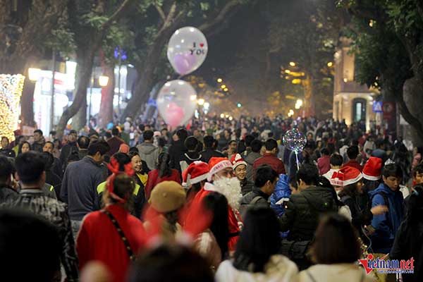 Người dân TP.HCM thích thú đón Giáng sinh trong tiết trời se lạnh. Ảnh: Trương Thanh Tùng