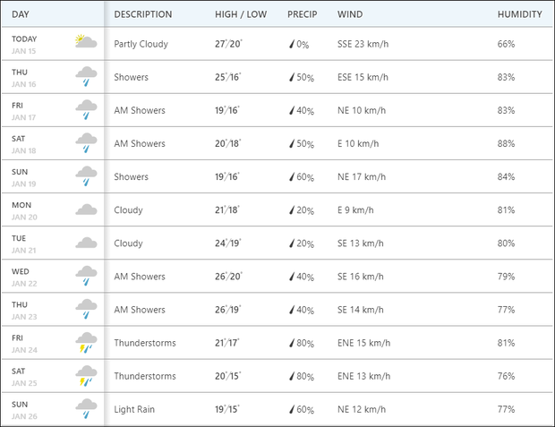 Dự báo thời tiết tại Hà Nội từ hôm nay (15/1) đến 26/1 (mùng 2 Tết nguyên đán) - Theo The Weather Channel