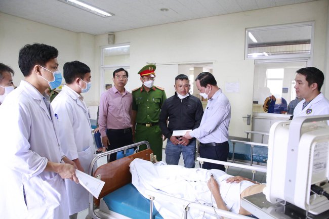 Ông Nguyễn Hồng Quang - Phó Chủ tịch tỉnh Quảng Nam thăm hỏi các nạn nhân.
