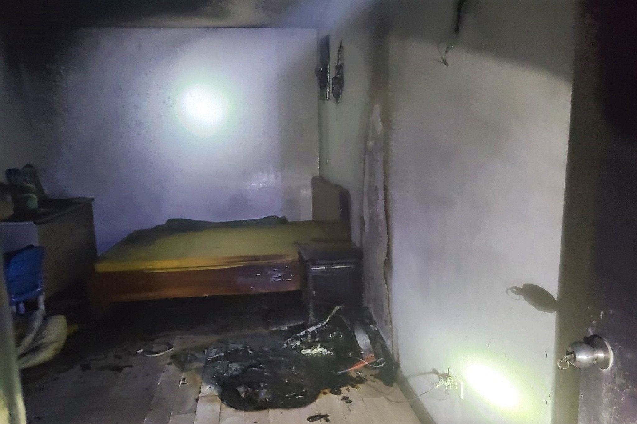 Bên trong căn hộ bị cháy. Ảnh: Công an cung cấp