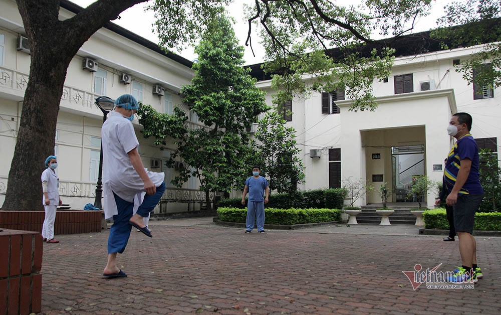 Khác với suy nghĩ về 1 khu cách ly "ảm đạm", bên ngoài khu cách ly C4, Viện Tim mạch, những khoảng sân trống được cán bộ y tế tận dụng, đứng thành vòng tròn, cách nhau 2m để đá cầu. Lối đi nội bộ trở thành những đường chạy thể dục mỗi chiều. Không khí vui vẻ có lúc khiến mọi người ở đây quên rằng "bệnh viện đang bị cách ly chống dịch".