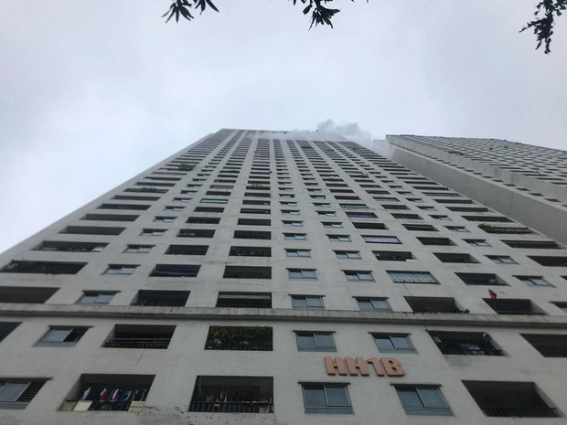 Tại thời điểm trên, người dân thấy khói bốc ra dữ dội tại một căn hộ ở tầng 33, chung cư HH1B. Khói cùng chuông báo cháy kêu lên khiến mọi người vội vã tháo chạy xuống dưới chung cư.