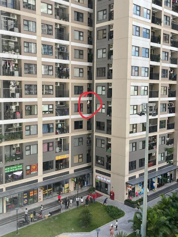 Người phụ nữ lơ lửng ngoài lan can chung cư rồi rơi xuống đất. ảnh: MXH.