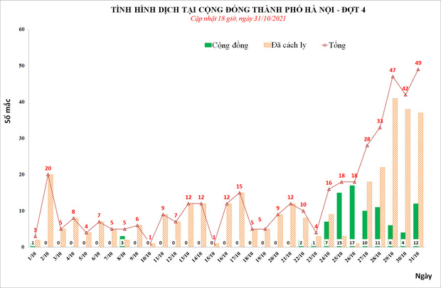 Biểu đồ ca nhiễm tại Hà Nội tính đến 18h ngày 31/10 (Ảnh: CDC Hà Nội)