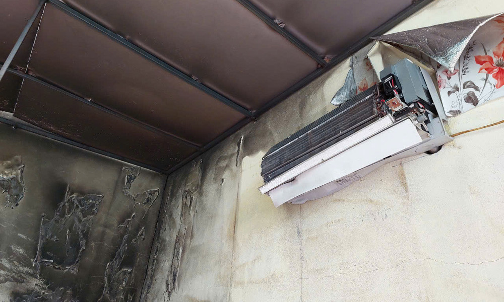Đồ đạc trong gian nhà bị hư hỏng toàn bộ, mái nhà bay mất một phần, tường nhà ám khói, dưới nền có nhiều chỗ bị lún vỡ.