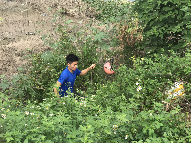Những bó cây trên mương nước đều được lật lên tìm kiếm.