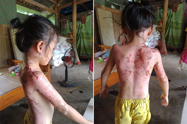 Khi đó, chị T đang ngồi trên giường cùng các con của mình là cháu Hà Thị D (SN 2015), Hà Văn Th (SN 2017) và cháu Hà Thị L (SN 2020). Hậu quả khiến chị T, cháu D và cháu L bị bỏng phải đi điều trị tại Trung tâm y tế huyện Thanh Sơn.