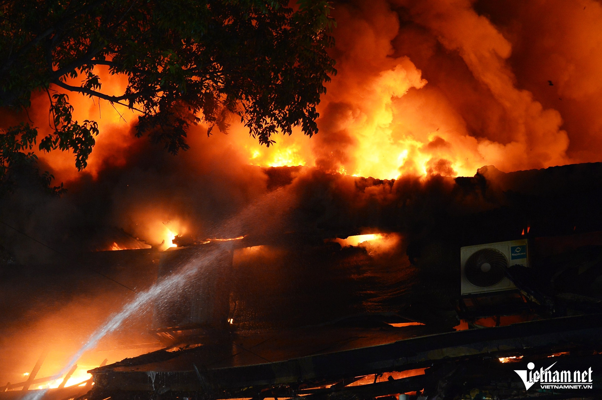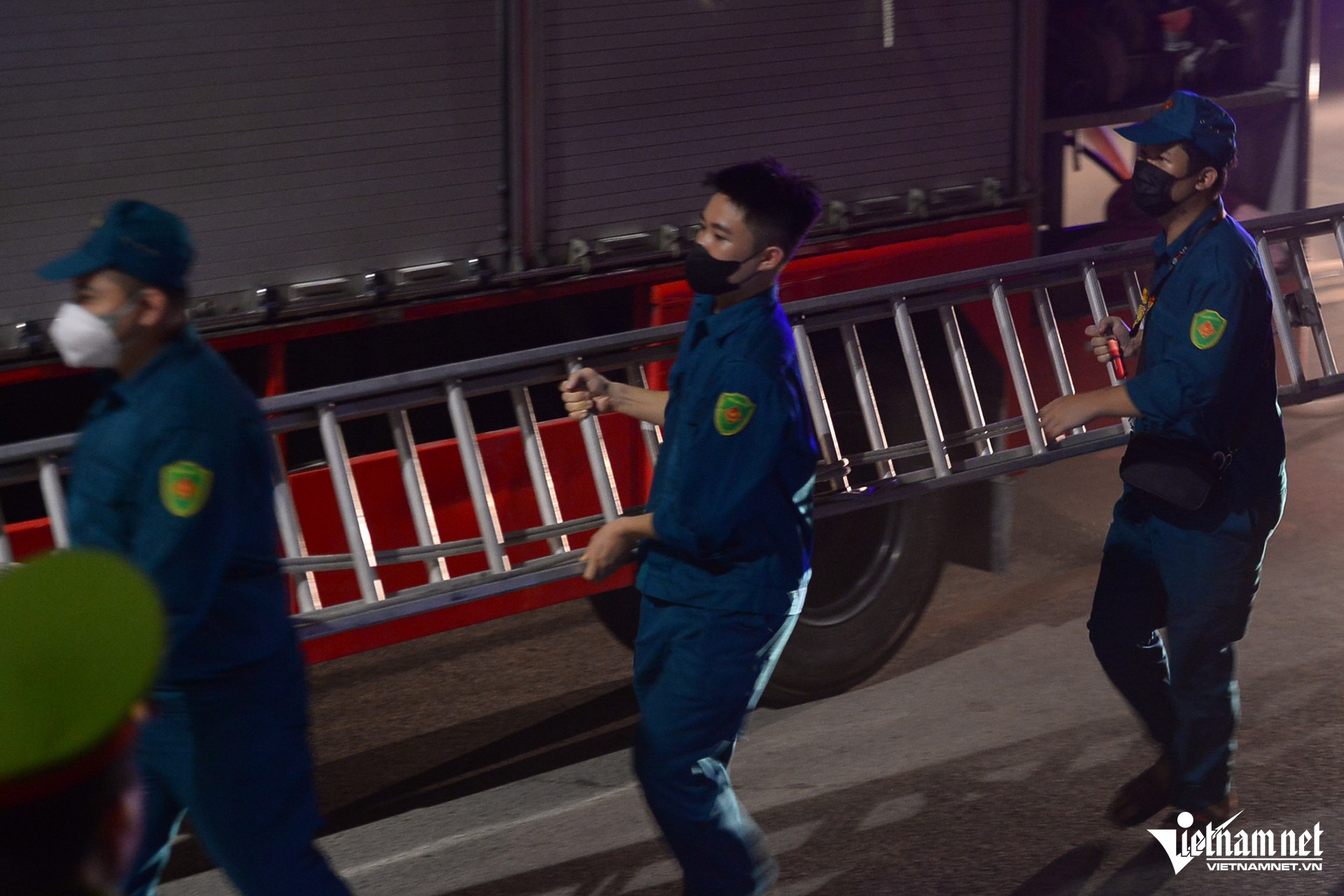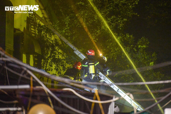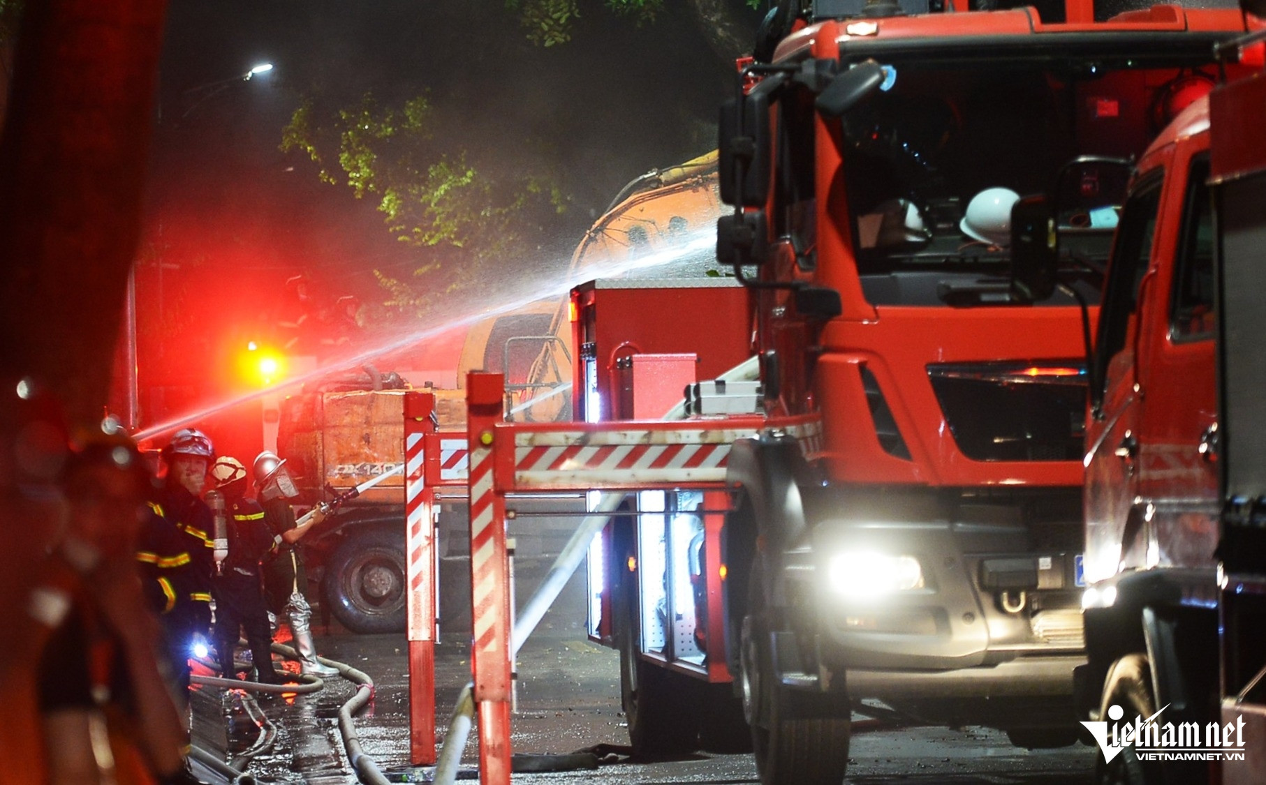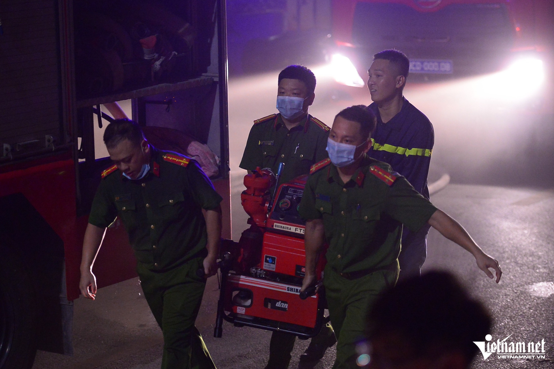 Phòng Cảnh sát PCCC&CNCH Công an TP Hà Nội cũng điều động 10 xe chữa cháy cùng hàng chục cán bộ, chiến sĩ đến hiện trường.