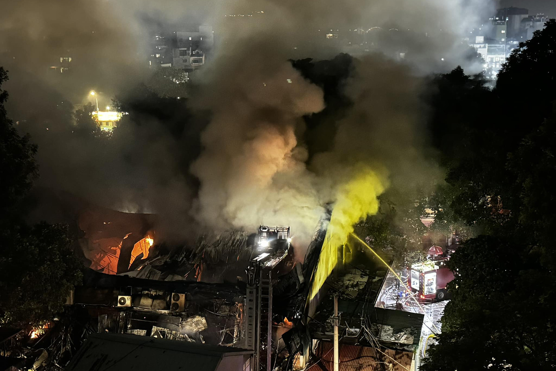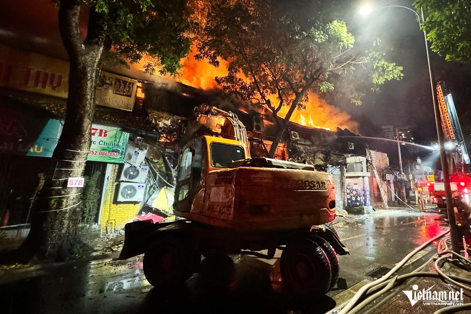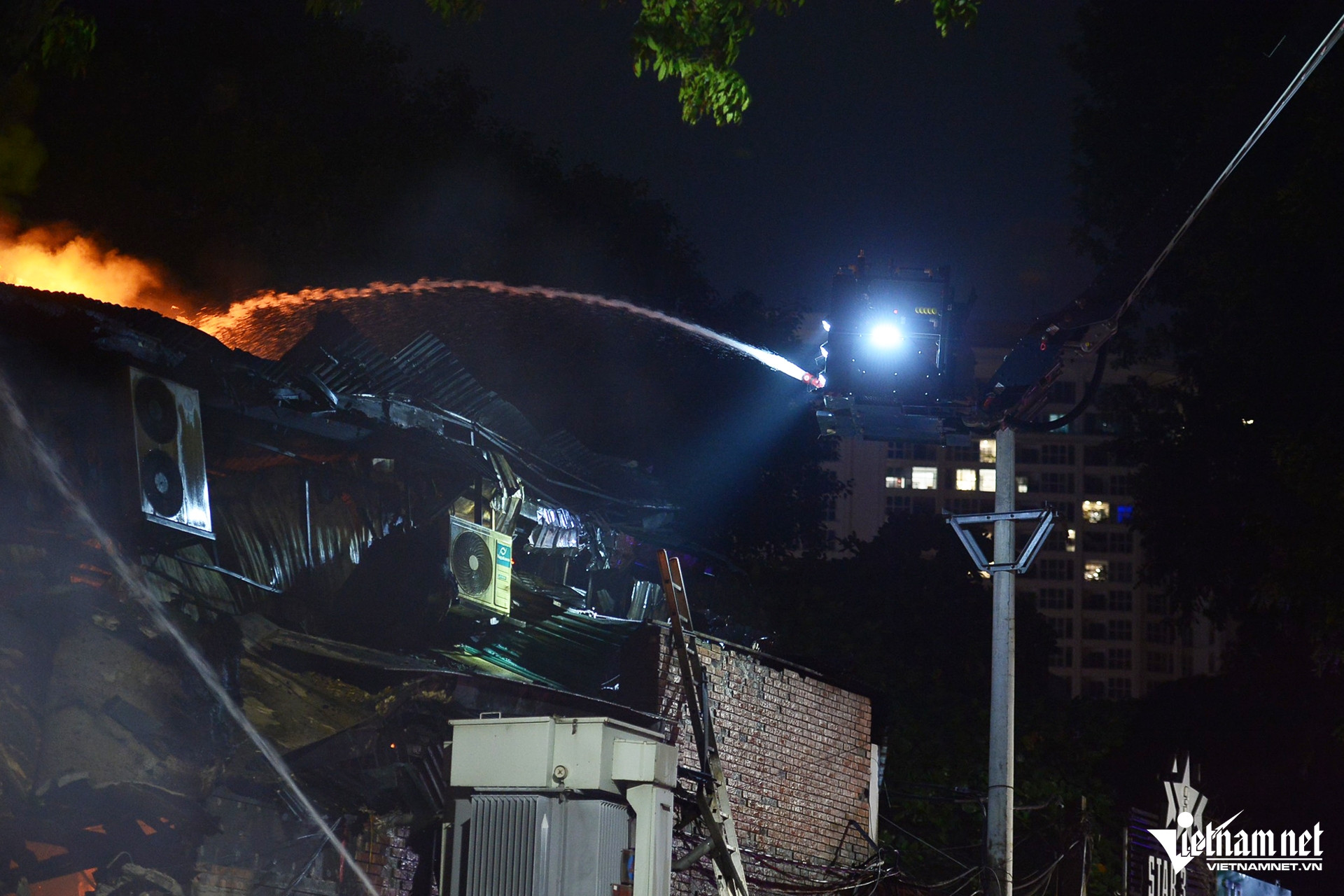 Đến 21h37 cùng ngày, lửa tiếp tục bùng phát dữ dội khiến lực lượng chức năng phải huy động 2 máy xúc để phá tường xung quanh quán bar.