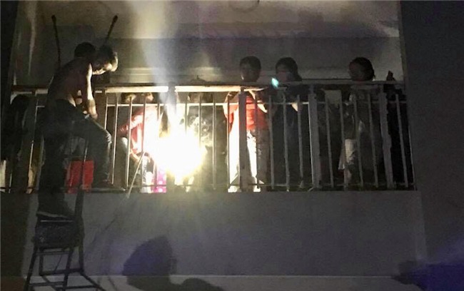 Nhiều người dùng dây buộc vào hành lang để đu xuống. Một phụ nữ bị trượt chân từ tầng 19 xuống đất tử vong.