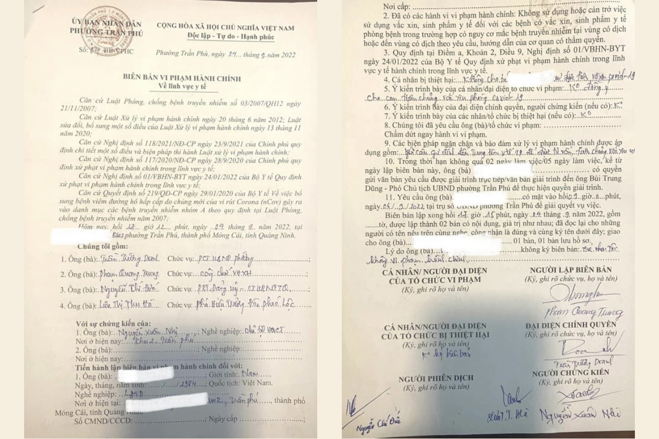 UBND phường Trần Phú, TP Móng Cái, Quảng Ninh vừa gây xôn xao dư luận khi lập biên bản vi phạm hành chính về lĩnh vực y tế đối với một số phụ huynh vì không cho con đi tiêm chủng vắc xin Covid-19 đầy đủ.