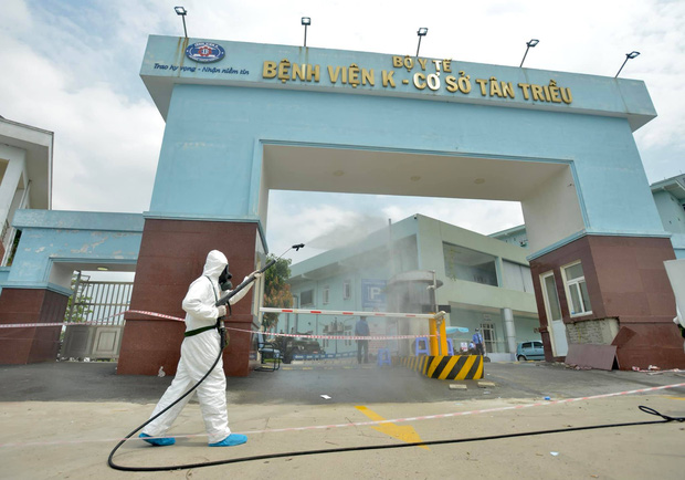 Bộ Tư lệnh Thủ đô phun khử khuẩn Bệnh viện K cơ sở Tân Triều ngày 7/5 (Ảnh: Phương Thảo)