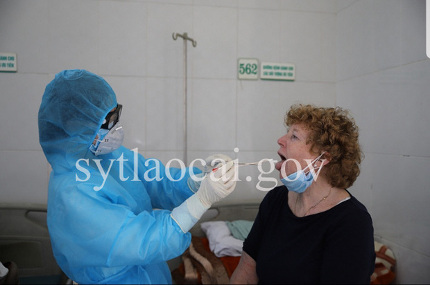 Lấy mẫu xét nghiệm cho bệnh nhân người Anh tại BVĐK tỉnh Lào Cai. Ảnh: Sở Y Tế tỉnh Lào Cai.