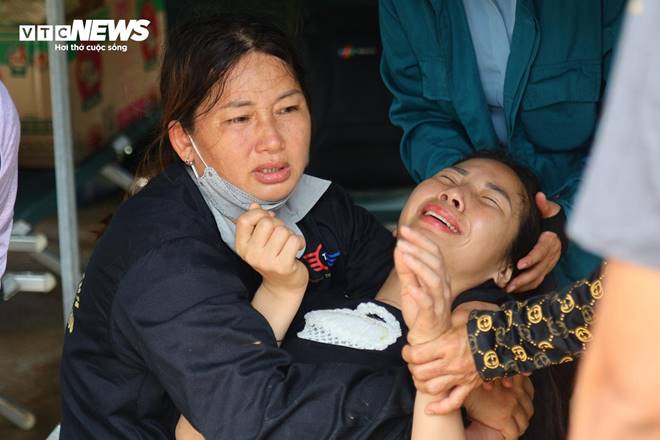 Chị Linh khóc ngất khi lực lượng chức năng tìm thấy thi thể 2 người con. (Ảnh: Minh Đức)