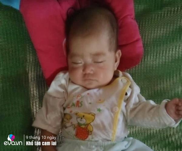 Chị Sáu sinh đôi sau 10 năm mong ngóng con. Bé gái nằm nhiều nên đầu hơi méo.