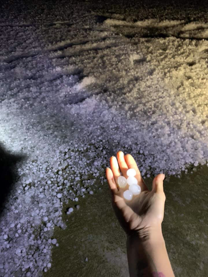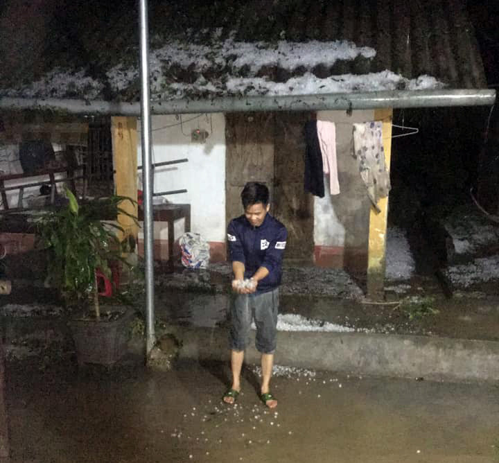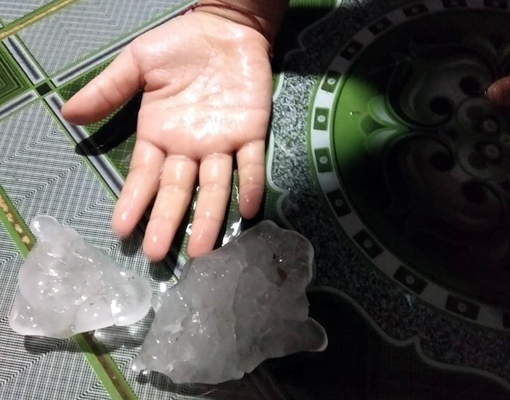 Có những nơi lượng mưa đá dày, viên đá kích thước bằng hòn bi.