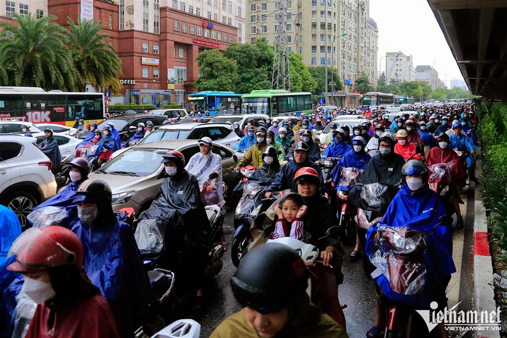 Đường Phạm Hùng ùn tắc kéo dài từ nút giao Trung Hòa đến ngã tư Xuân Thủy - Hồ Tùng Mậu - Phạm Văn Đồng.