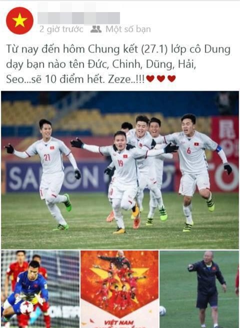 Người hâm mộ bóng đá Việt Nam đồng loạt chia sẻ niềm vui vỡ òa sau khi trận đấu kết thúc cùng những lời tán dương, cổ vũ "đội tuyển nhà" trên facebook cá nhân.