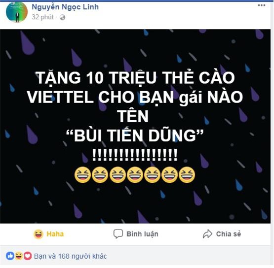 Cho chồng đi nhậu, tặng thẻ cho cô gái nào có tên Bùi Tiến Dũng.