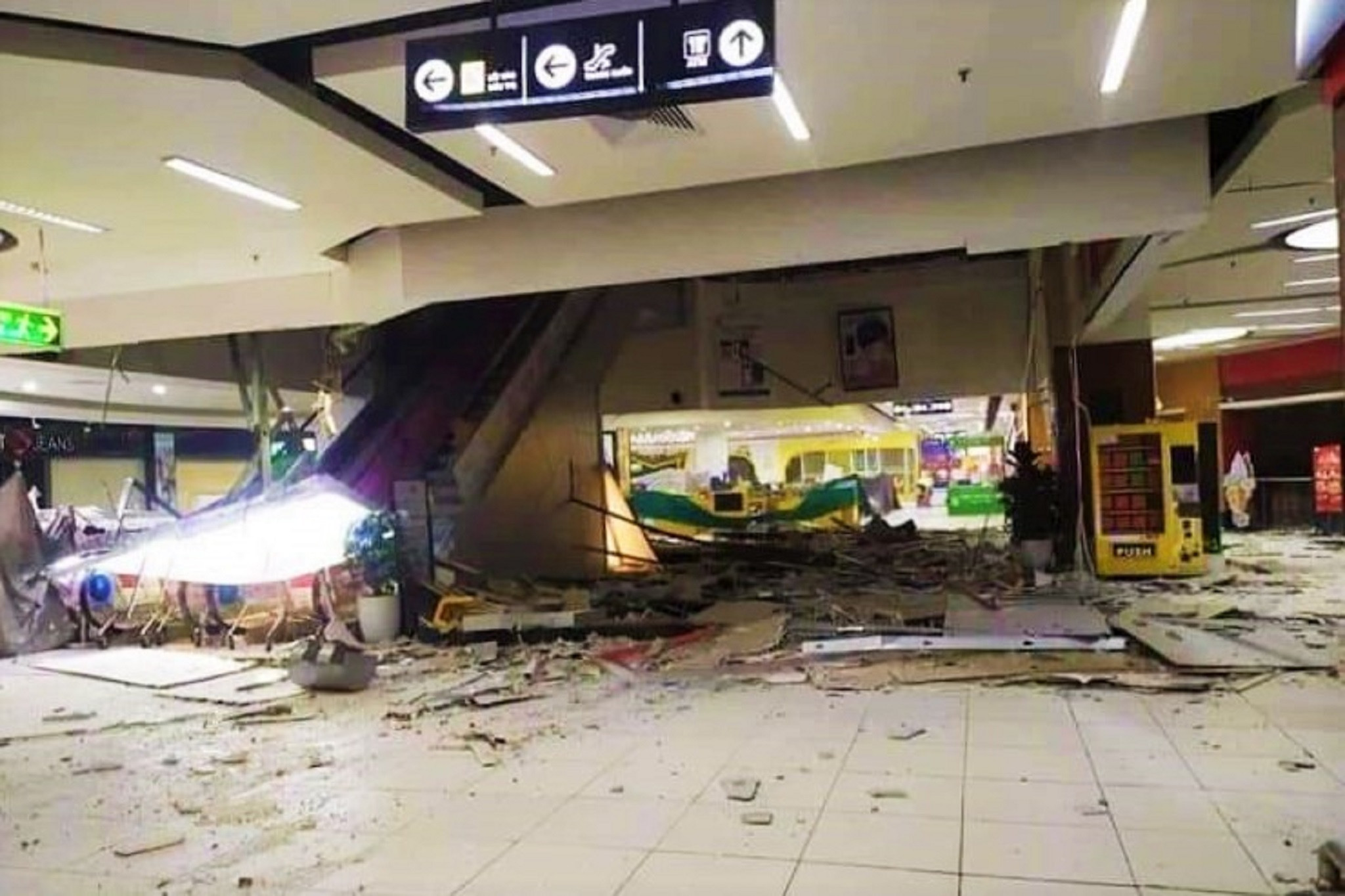 Chiều 20/11, trên mạng xã hội lan truyền hình ảnh ghi lại cảnh trần nhà, vách kính... của một trung tâm thương mại bị sập. Nhiều vật liệu, mảng kính, bảng quảng cáo rơi xuống khu vực thang cuốn ở tầng một.