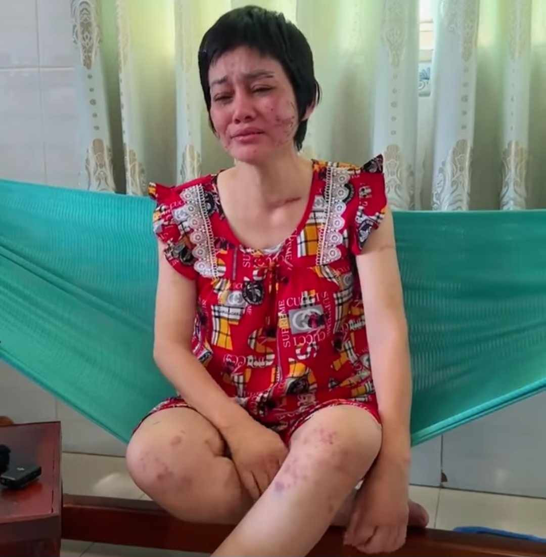Những vết thương chằng chịt trên cơ thể người vợ mang thai 7 tháng.