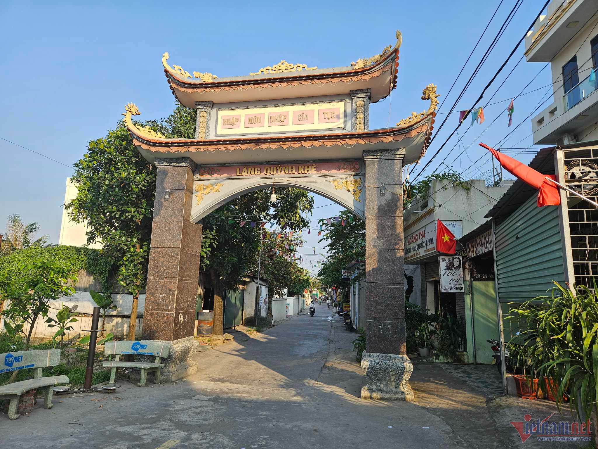 Cổng làng dẫn vào ngôi nhà của anh Luân, nơi chị Giao đã có gần 3 năm làm vợ.
