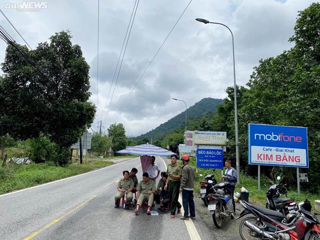 Trưa 31/7, lực lượng chức năng thị trấn Đạ M'Ri, huyện Đạ Huoai, tỉnh Lâm Đồng vẫn chốt chặn dưới chân đèo Bảo Lộc.