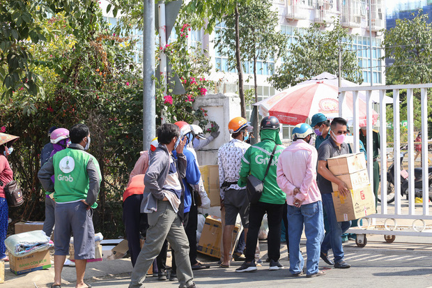 Bên ngoài cổng, người dân vẫn đứng chờ hàng giờ ngoài nắng để tiếp tế.