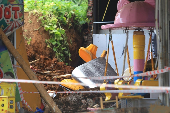 Kể lại quá trình đưa 3 cháu bé tử vong ra khỏi vụ sạt lở đất, ông Bùi Văn Tiến cho biết: "Khoảng 22h00 ngày 12/5, ngoài trời mưa lớn. Khi đó, gia đình tôi đã đóng cửa đi ngủ thì nghe tiếng gọi của hàng xóm bảo sập tường rồi, mang xà beng sang ngay đi. Nghe thấy vậy, tôi cầm theo xà beng đi ra thì thấy khu vui chơi bị sạt lở".