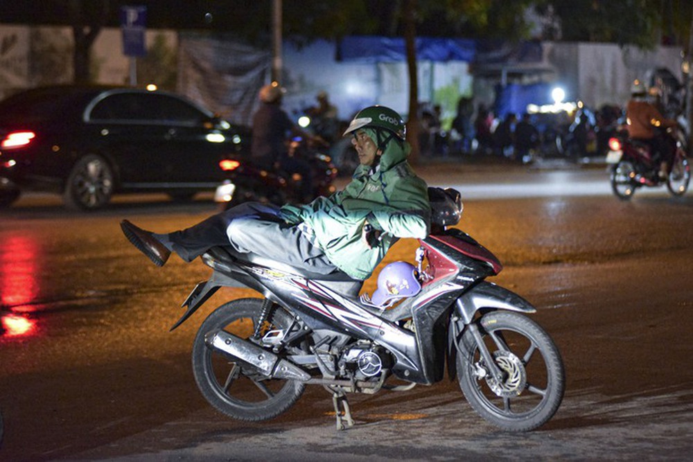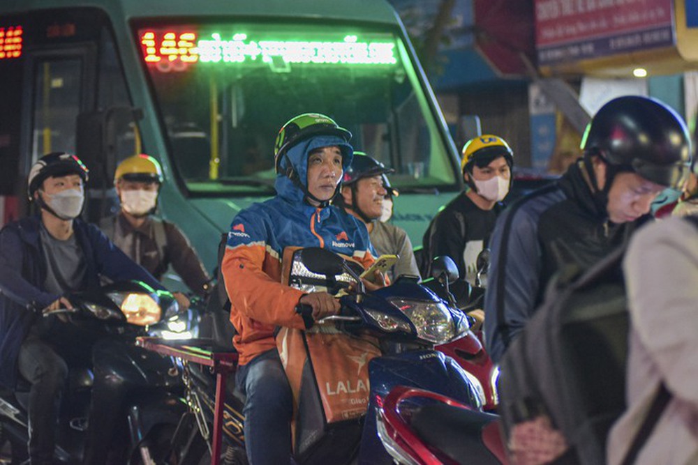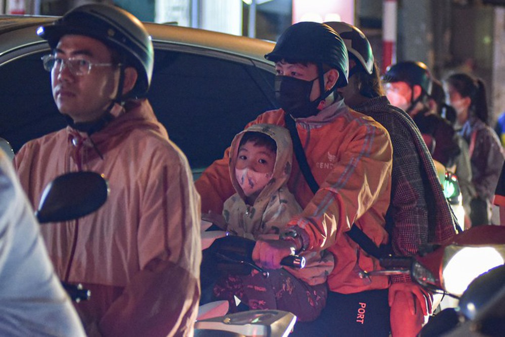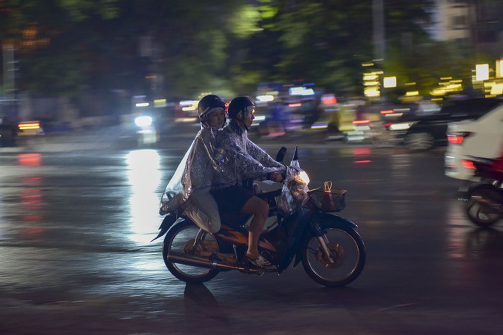 Đến 20h30, nhiệt độ giảm kèm theo mưa khiến việc di chuyển trên đường phố khó khăn hơn. Người dân đã phải mặc thêm áo mưa khi tham gia giao thông