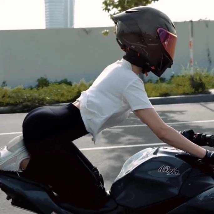 Trước đó, mạng xã hội lan truyền clip ghi lại cảnh người phụ nữ chạy mô tô phân khối lớn, đứng trên xe và dang tay, có đoạn để hai chân sang một bên, quỳ trên xe để chạy xe...