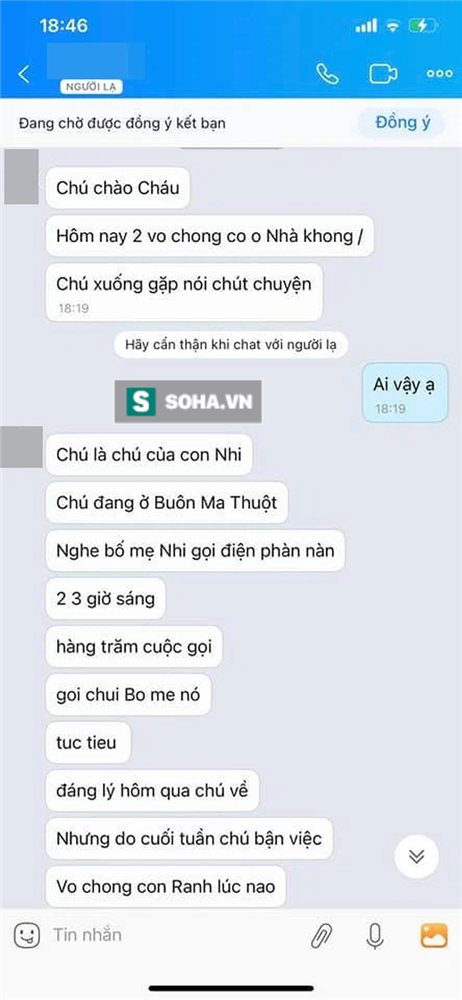 Tin nhắn của người được cho là chú ruột bác sĩ Kiều Nhi.