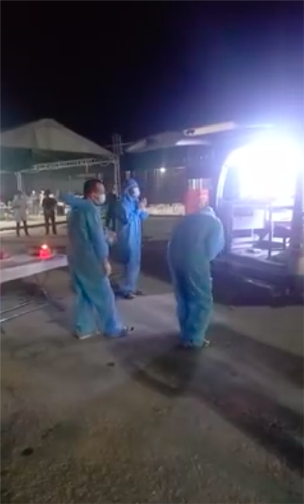 Tại đây, người thân của T.A cũng đã đợi sẵn để đón em về nhà, về với quê hương. Người thân của nam thanh niên cũng phải mặc quần áo bảo hộ, đeo khẩu trang để tuân thủ quy định phòng dịch.