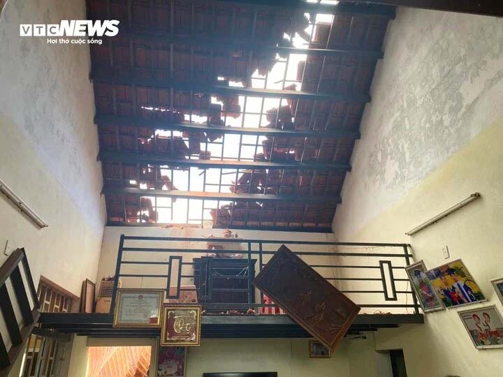 Nhà hộ dân bị tốc, hư hỏng mái ngói, sập tường.