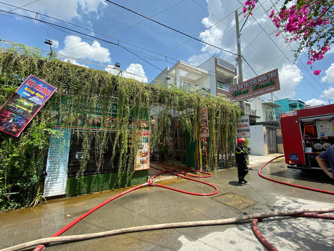 Thời điểm này nhân viên trong nhà hàng bất ngờ phát hiện khói đen bốc lên nghi ngút ngoài sân vườn. Ngay sau đó nhiều người bên trong nhà hàng hàng hô hoán cùng nhau dập lửa.