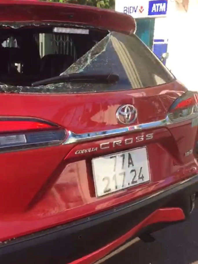 Ô tô của ông Đ.H.V. bị nhóm đánh ghen đập vỡ kính phía sau
