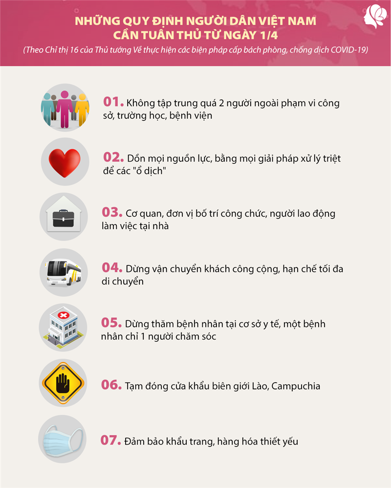 Chỉ thị nêu rõ, theo dự báo, dịch bệnh sẽ lây lan nhanh trên diện rộng, đe dọa nghiêm trọng đến tính mạng, sức khỏe con người và kinh tế - xã hội của đất nước. Yêu cầu toàn thể nhân dân tự giác chấp hành các yêu cầu, các biện pháp phòng chống dịch, tích cực tham gia khai báo y tế tự nguyện, thực hiện đầy đủ các biện pháp tự bảo vệ mình, gia đình mình và tham gia có trách nhiệm với các hoạt động phòng, chống dịch của các cơ quan chức năng và cộng đồng. Cụ thể: