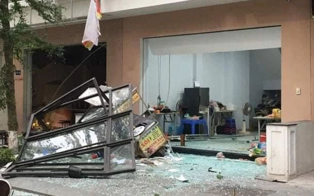 Vụ nổ tạo ra sức ép lớn, khiến cửa kính vỡ tung, phần khung nhôm bị hất văng và móp méo, nhiều đồ đạc của quán cũng bị hất văng ra ngoài, bay xa cả chục mét. Rất may trong khi phát nổ, không có người hay phương tiện đi qua nên chỉ có thiệt hại về tài sản.