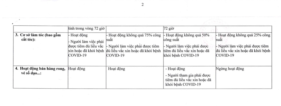 Riêng hoạt động cửa hàng dịch vụ có nguy cơ lây nhiễm cao và bán hàng rong, vé số dạo sẽ ngừng hoạt động nếu ở dịch ở cấp 4.