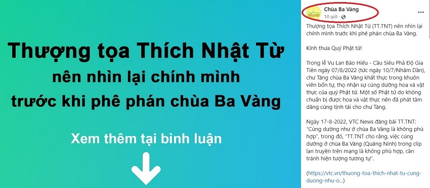 Những thông tin liên tục đăng tải trên trang facebook của Chùa Ba Vàng thu hút sự quan tâm của cộng đồng mạng. Cùng với đó, nhiều người cũng dõi theo phát ngôn trên mạng xã hội của trụ trì Chùa Giác Ngộ.
