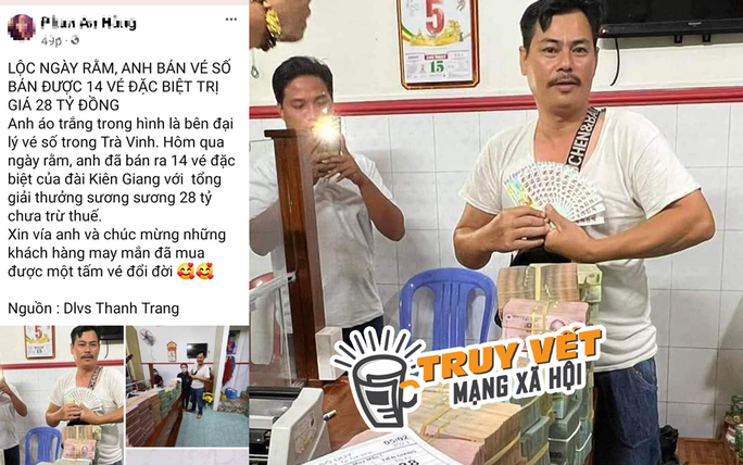 Hai ngày qua, mạng xã hội Facebook, Tiktok… lan truyền thông tin một đại lý vé số tại Trà Vinh bán trúng 14 tờ giải đặc biệt, trị giá khoảng 28 tỉ đồng (chưa trừ thuế).