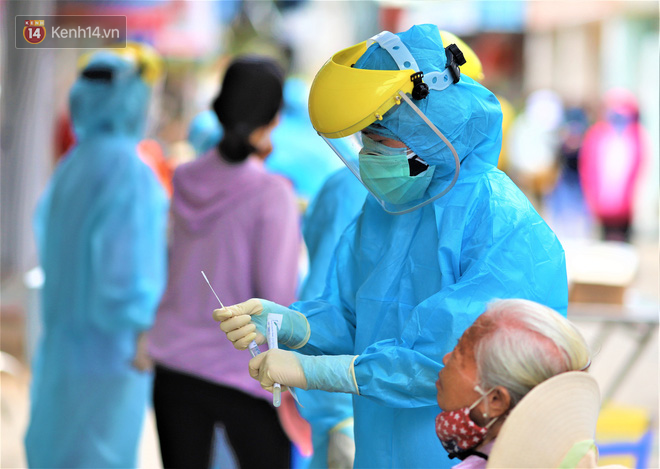 Lực lượng chức năng lấy mẫu xét nghiệm Covid-19 cho người dân.
