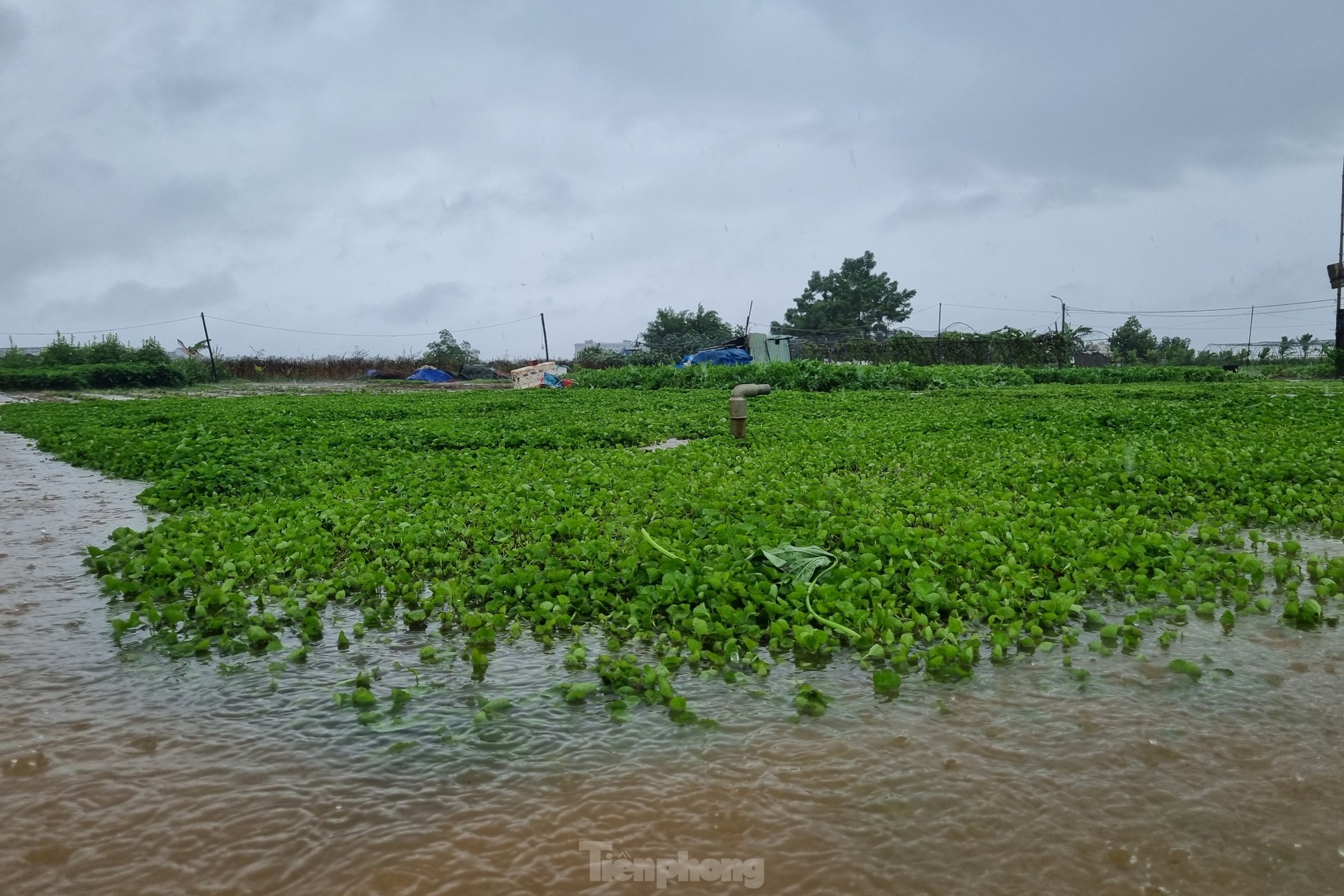 Nhiều thửa đất mới gieo trồng đã bị nước ngâm hư hại. Bà Nguyễn Thị Đây (phường Khuê Trung, quận Cẩm Lệ) cho hay nhà bà có hơn 2 sào rau, hiện tất cả đã chìm trong nước. Ảnh: Thanh Hiền. |
