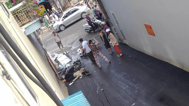 Người phụ nữ nằm bất động, rất nhiều người dân xung quanh đã chạy đến xem xét tình hình và tìm cách giúp đỡ nạn nhân